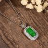 A-Grade Bright Green Wushi Pai Jade Pendant Necklace with Alloy Inlay