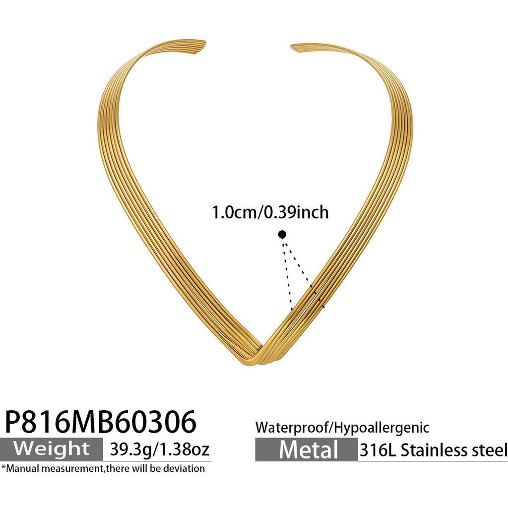 European & American 7-Layer V-Shape Choker Necklace, Punk Style Fashion, 18K Gold-Plated Stainless Steel.
