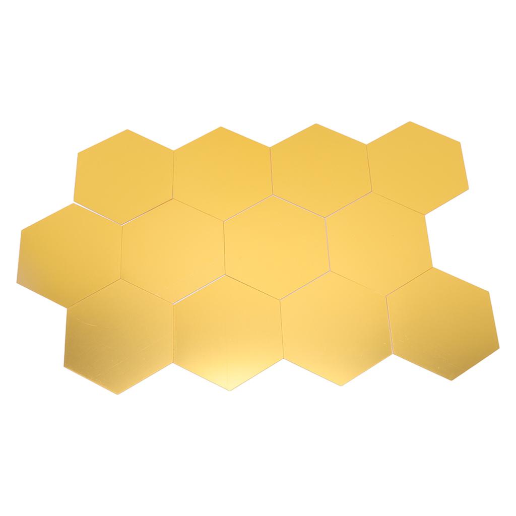 12Pcs Mirror Wall Sticker Gold Hex Shape Large Acrylic Mirror Wall Decal for Kitchen Bathroom Bedroom Living Room