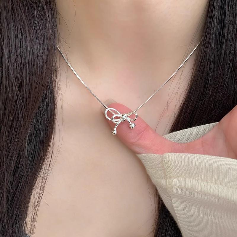 Spot bow necklace women's summer new collarbone chain high-end niche