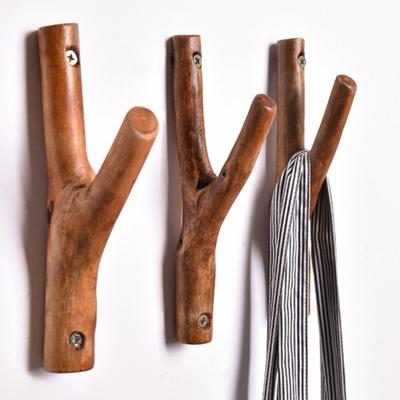 Nordic Retro Solid Wood Tree Branch Wall Hook for Pastoral Decor