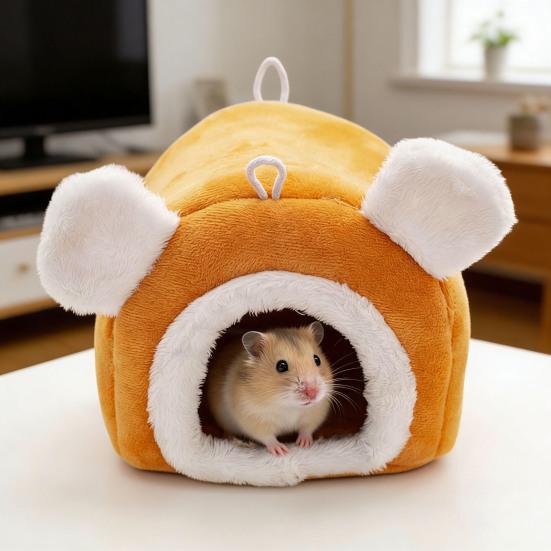This Universal hamster bed is perfect for a variety of small pets including hamsters, rabbits, squirrels, and parrots. Featuring adorable bear ears, it adds a charming touch while saving space with its convenient hanging design.