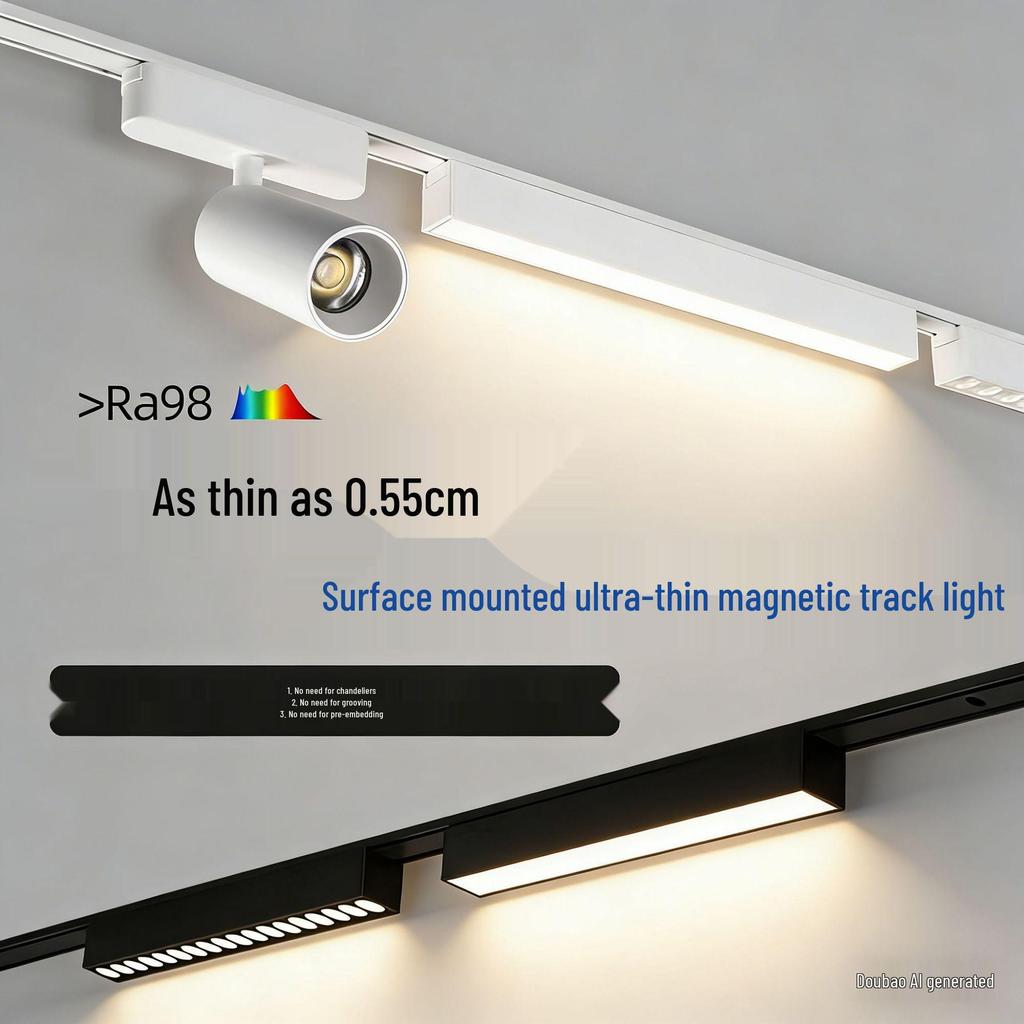 Ultra-Thin Magnetic Surface-Mounted Track Lighting, 5.5mm, No Ceiling Needed, White Smart Spotlights for Home Living Room