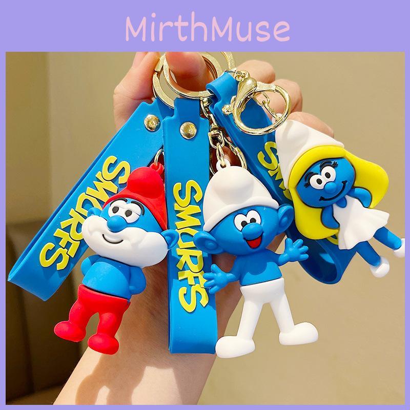 Smurfs Papa Jokey Smurf Smurfette Silicone Keychain Bright Colorful Cartoon Pendant