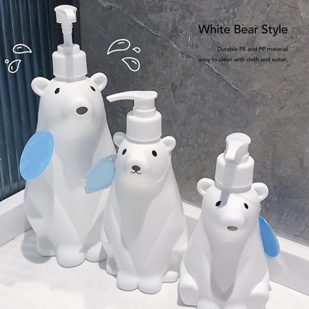 Shampoo Dispenser Cute Stylish White Bear Space Saving Shower Bottles Strong Pump Type for Bathroom