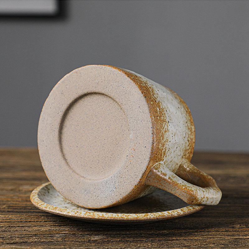 300ml European Style Stoneware Coffee Mug With Saucer Retro Tea Cup Afternoon Tea Set for Women Mom