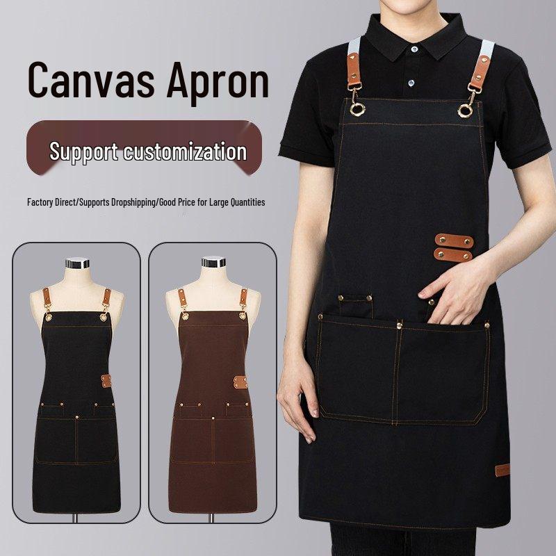 Waterproof Canvas Strap Apron with Logo Printing for Kitchen, Milk Tea, and Coffee Makers