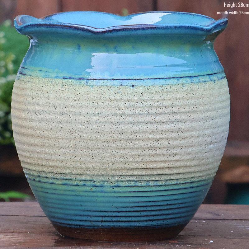 Handmade Coarse Pottery Tall Flower Pot for Succulents and Green Plants – Breathable Ceramic Jar for Bird of Paradise & Bougainvillea