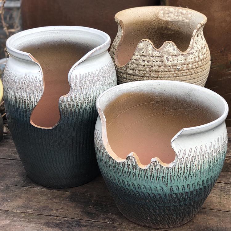 Handmade Retro Ceramic Pot - Purple Clay Succulent Planter with Jade Pendant