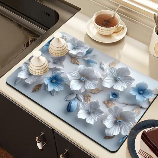 Enhance your kitchen with this premium dish drying mat featuring a stylish three-dimensional printed pattern that complements modern and light luxury decor. Crafted from high-density, water-absorbent material, it quickly soaks up residual water from dishes and countertops, preventing mold and keeping surfaces dry and clean. The anti-slip bottom ensures stability during use, while the surface resists penetration, making oil and tea stains easy to wipe away.
