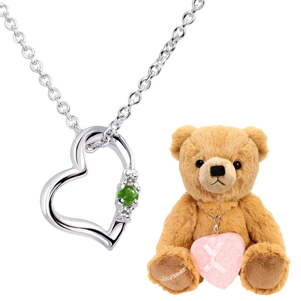 Natural Diamond Heart Necklace for Teddy Bear Plush Toy May Emerald Brown Bear [Sears] Women, Set, Birthstone, 1491-tdt-01-b5