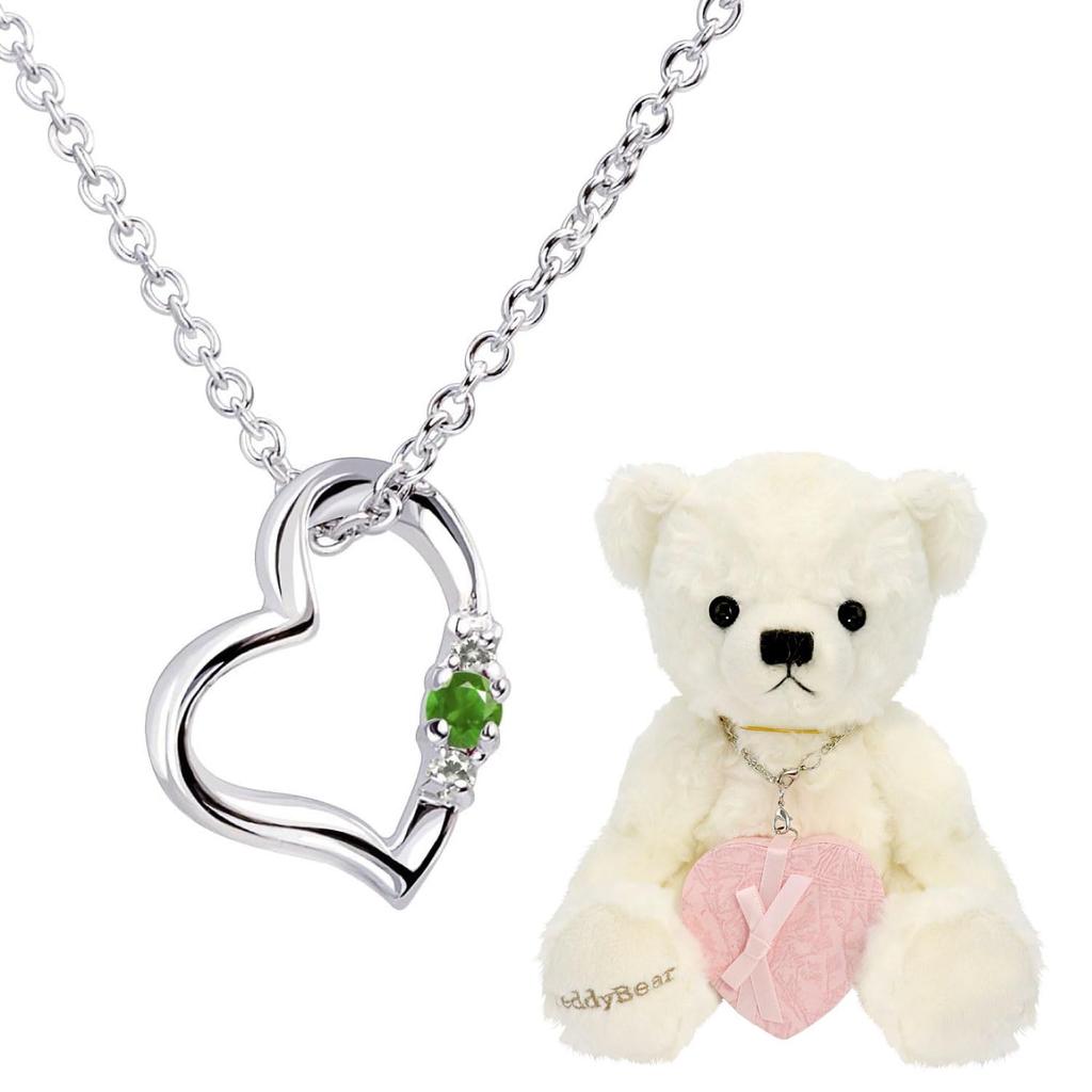 Natural Diamond Heart Necklace for Teddy Bear Plush Toy Emerald Pearl White Bear [Sears] Women, Set, May, 1491-tdt-01-w5