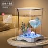 Small Desktop Aquarium with LED Light Creative Betta Fish Tank Complete Ecological Fish Tank for Home Office