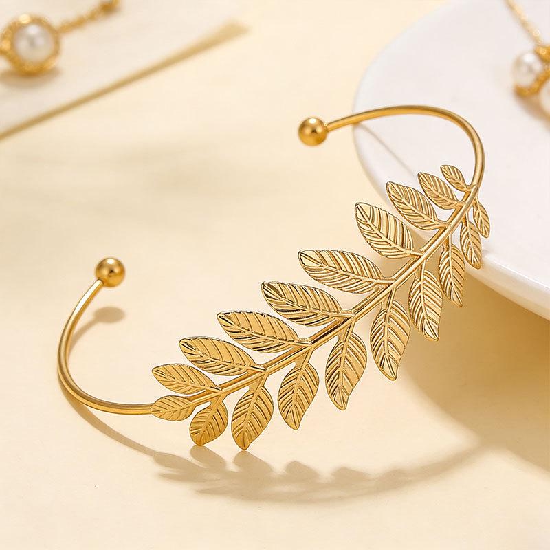 Adjustable Baroque Leaf Metal Arm Ring – European & American Style
