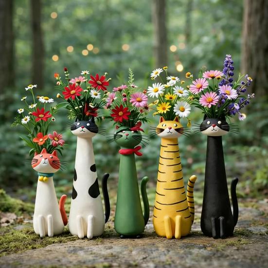 Handcrafted Cat Design Full of Personality: Each vase is meticulously handmade with unique cat-shaped features, showcasing vivid expressions and lively poses. This creative artistry infuses humor and charm into your decor, transforming a simple vase into an engaging conversation starter that reflects playful character.