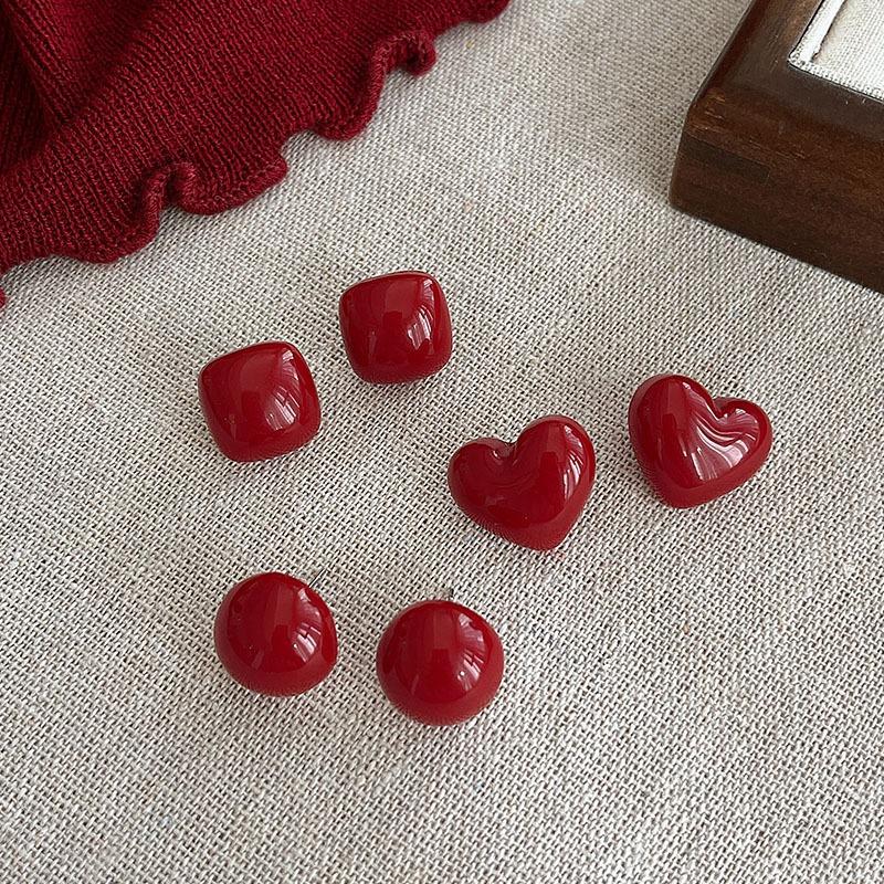 Beanie Pearl Stud Earrings in Vintage Red, Suitable for Ear Piercing, Ear Barb Without Removal Jewelry.