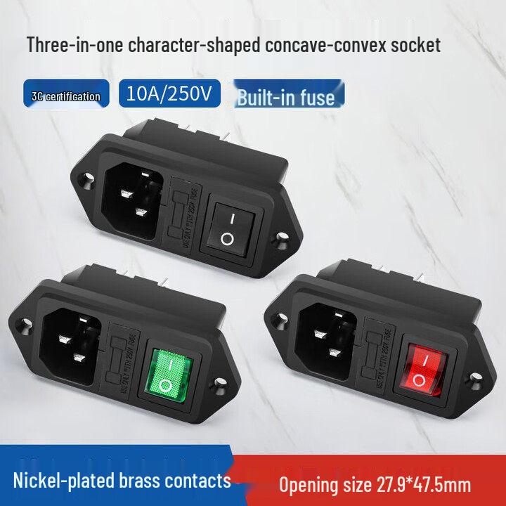 3-in-1 Type C Power Socket with Fuse, Switch, and 3-Pin Convex Surface, 10A/250V