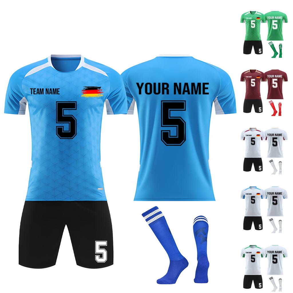 Personalised Shirts Kit Mens Girls With Name Number Custom Football Jerseys For Boys Training Suit Product Description: 1.Polyester 2.Football uniforms are very suitable for daily use such as football games, various ball sports, outdoor running, training etc., casual wear, breathable training clothing, suitable for fan collection. 3.It is made of breathable and sweat-absorbing fabric, keeps it cool, dry, comfortable, does not deform easily and can be washed repeatedly. 4.Please refer to the size chart before purchasing. To choose the right size, please refer to our size chart to determine your perfect size. 5.Gifts for football fans: If you are a loyal football fan, you don't have to miss this. If you have any questions, please contact us Please allow slight 1-3cm difference due to manual measurement and a little color variation for different display setting, thanks for your understanding! 1 inch 2.54 cm Thank you and nice day! Package include:1PC Tops1PC Shorts1Pairs Socks Size Chart: