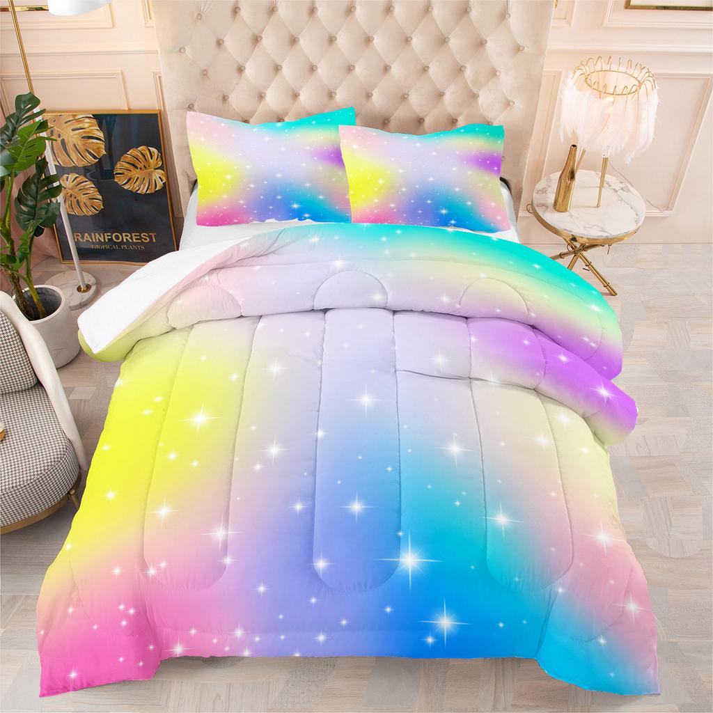 Quilt Gradient Clouds Sky Layered Feather Silk Quilt Fat Quilt Core Rainbow Quilt Cover Three-piece Set