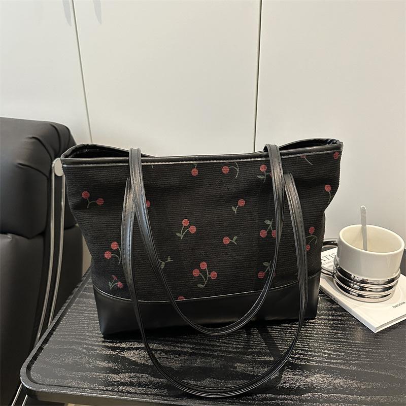 High Aesthetic Fruit Printed Tote Bag, New Trendy Large Capacity Shoulder Bag, Patchwork Casual Commuting Versatile Bags