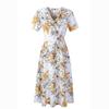 Kadın Yaz Rahat V Yaka Kısa Kollu Salıncak A Hattı Şifon Baskı Şık Uzun Elbise S-XL