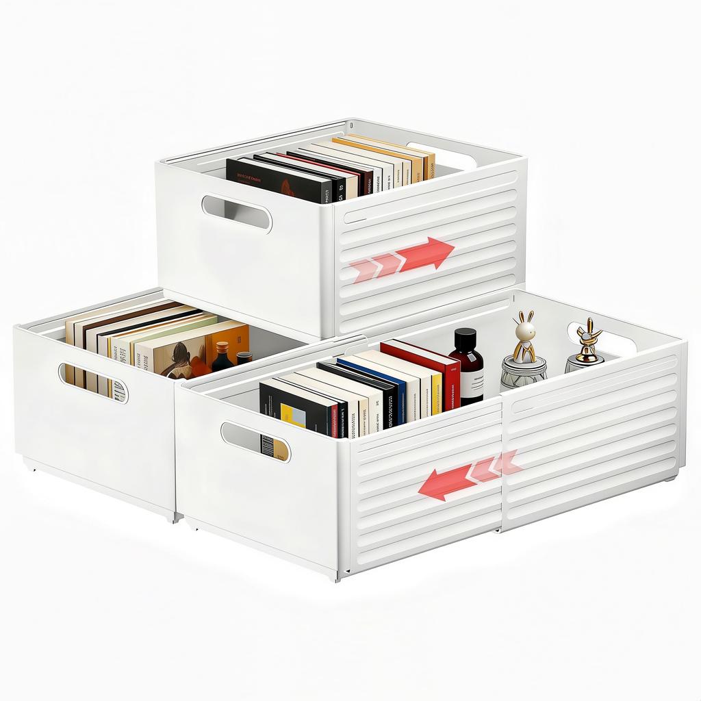 Expandable Storage Set of Adjustable Small Item with Dividers and for White Fu-de-mo Cases, 3, 25x15cm, (28-48cm), Organizer, Plastic, Stackable,