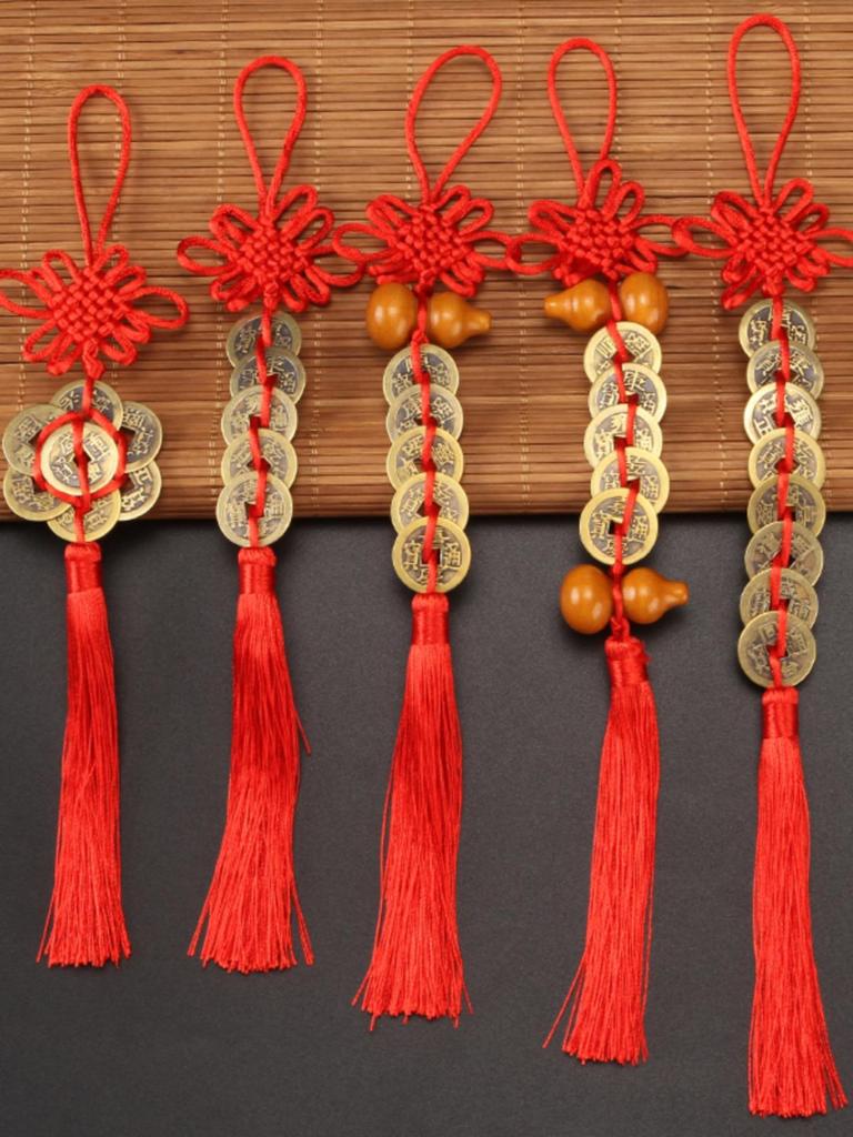 Chinese Knot Five Emperors Coins Gourd Door Hanging Decoration for Housewarming