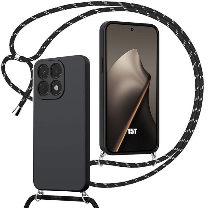 Coque pour Xiaomi 15T, Protection Silicone Liquide Antichoc Anti-Rayure avec Cordon Noir