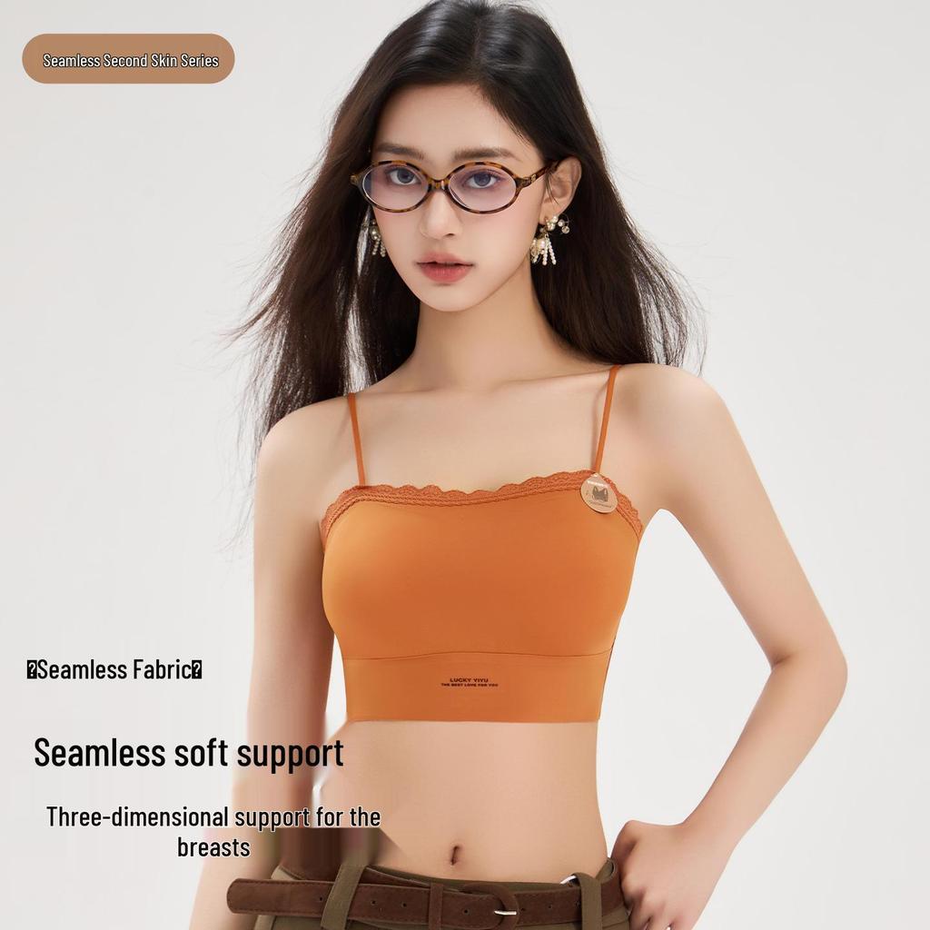 Summer Seamless Lace Trim Push-Up Bandeau Bra – Wire-Free, Strappy, Anti-Exposure, Sweet Beautiful Back Design.