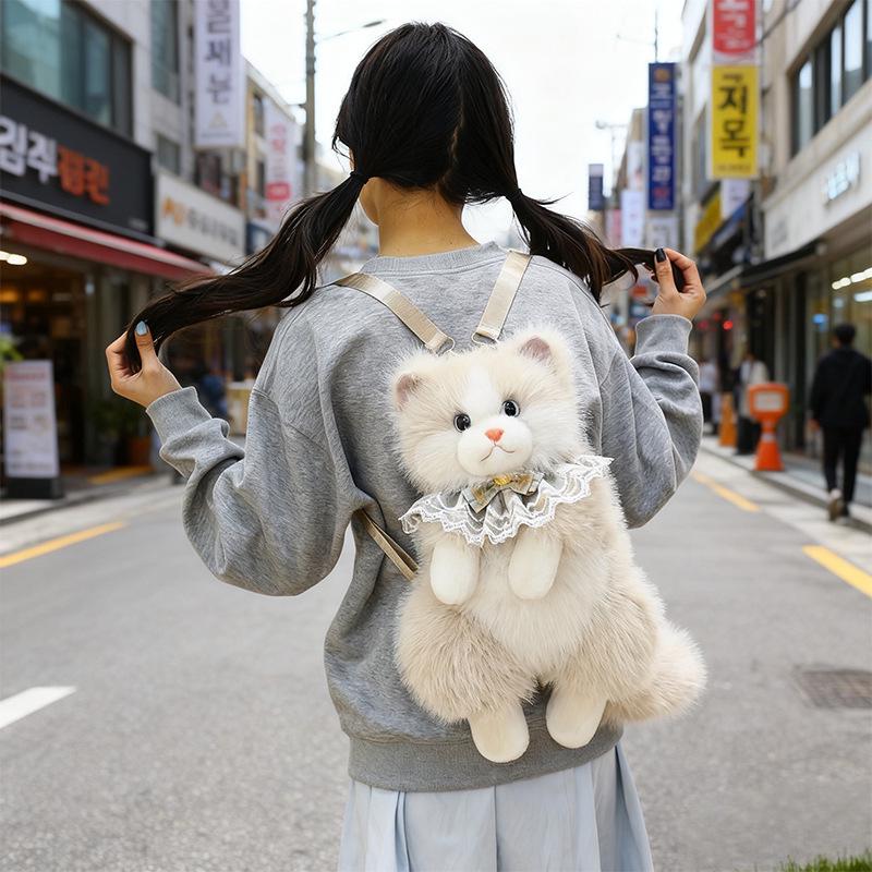 Cross-border Cat Doll Backpack: Plush Simulation Double Shoulder Toy, Ideal Gift for Girls