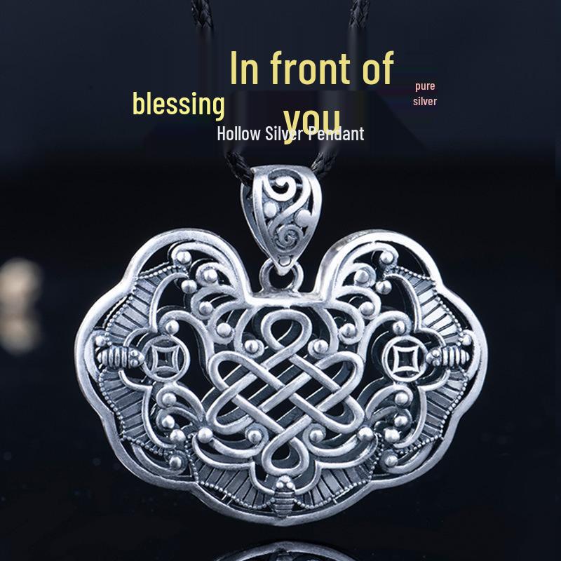 Sterling Silver Bat & Longevity Lock Pendant Necklace for Men & Women - Retro Sweater Chain Full Moon Gift
