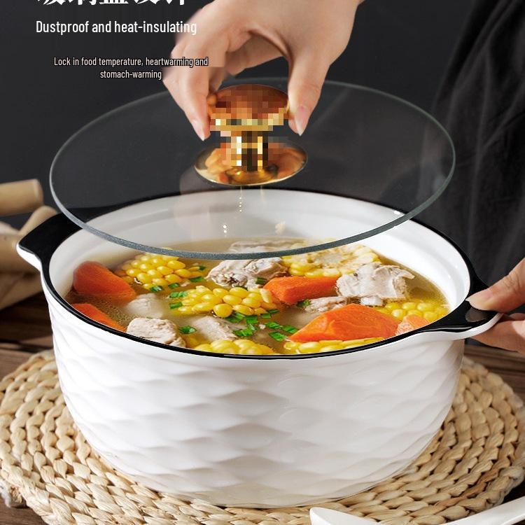 10.5" Double-Ear Ceramic Sauerkraut Fish Bowl - Large, Anti-Scald, with Lid