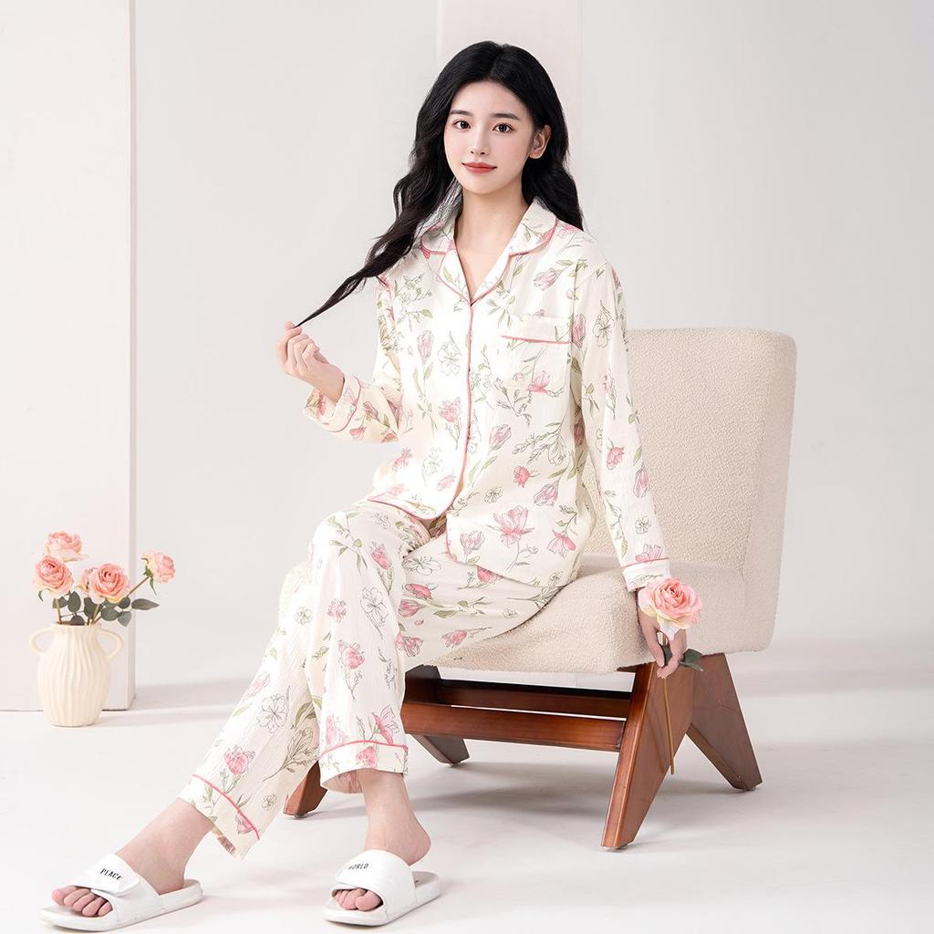 Experience ultimate comfort and style with this Women's Spring & Autumn Cotton Pajama Set. Crafted from luxurious cloud cotton, this set offers a soft and breathable feel against the skin. The long sleeves provide extra warmth, making it perfect for the transitional seasons of spring and autumn. Whether you're lounging around the house or settling in for a good night's sleep, this homewear set combines elegance and coziness effortlessly.