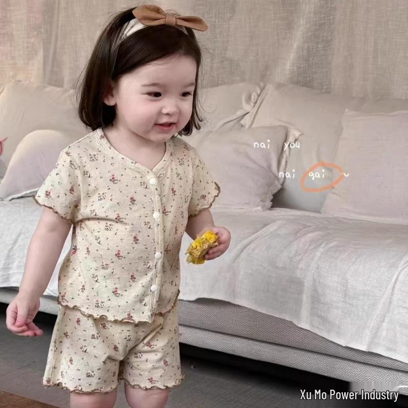 Baby Girls' Creamy Milk Cap Floral Summer Two-Piece Set: Short-Sleeve Top & Pants