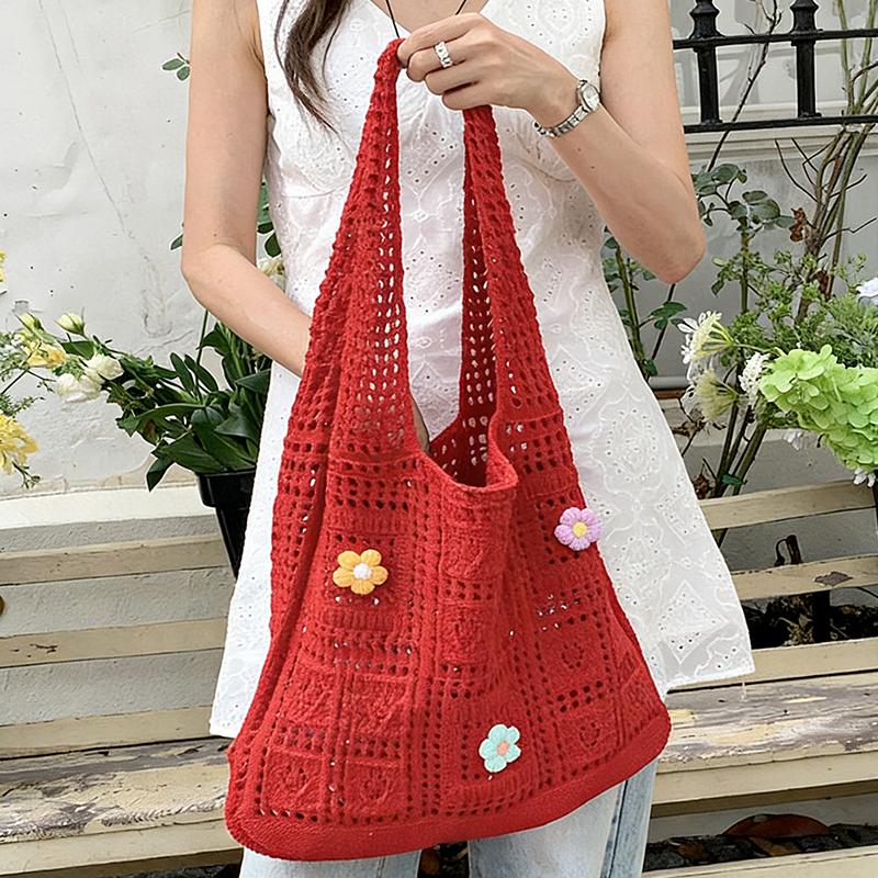 Simple Crochet Tote Bags Fashi Hollow Knitted Women's Bags Casual Female Shoulder Bags Ladies Shopping Top-Handle