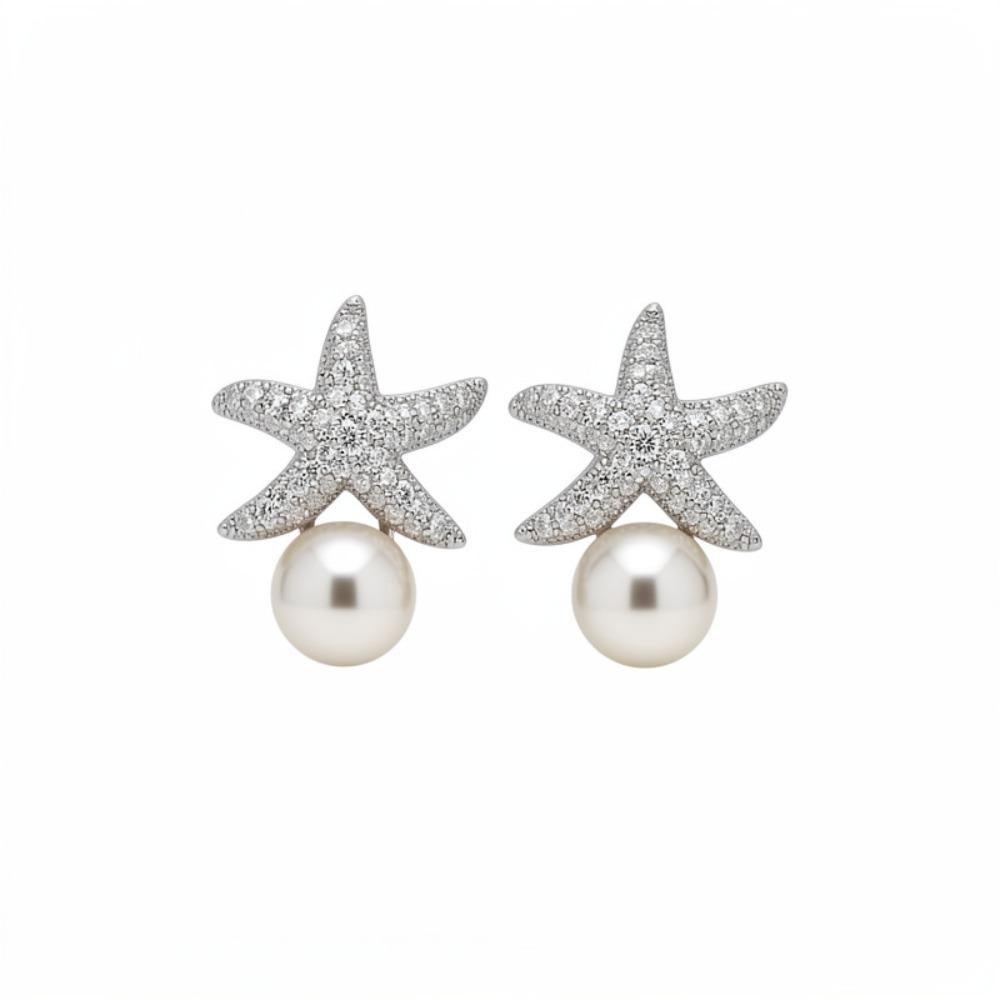 Crystal Starfish Pearl Stud Earrings Ocean Style Starfish Starfish Ear Studs Women