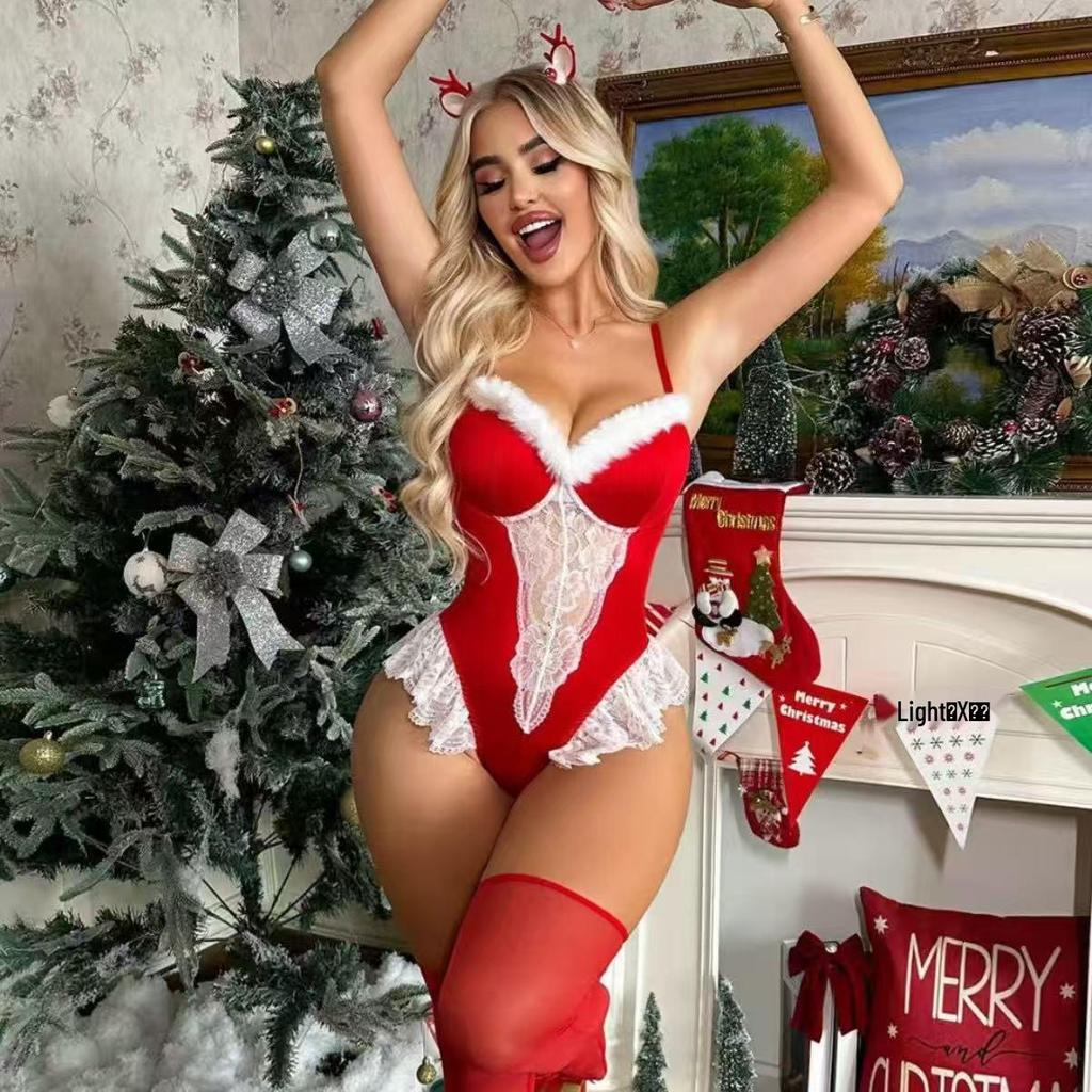 Christmas Lingerie: Sexy Bodysuit & Suspender Pajamas Set
