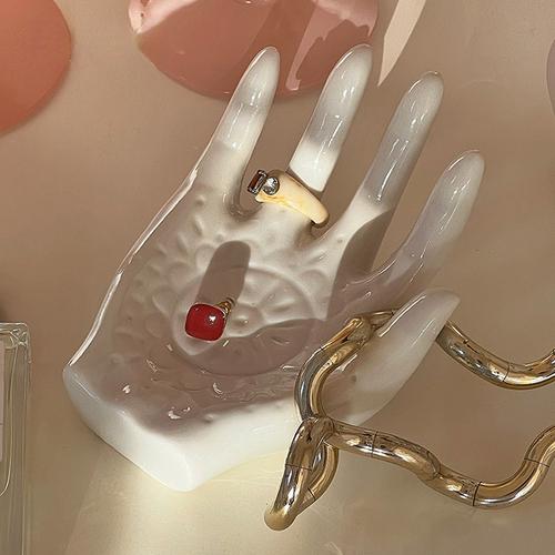 Palm Shaped Ring Collection Storage Rack Ceramic Ornaments Display Rack Art Desktop Decoration Knickknacks Candle Tray Decor