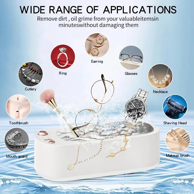Ultrasonic Cleaner High-Frequency USB Rechargeable with Adjustment & Timing Feature for Household Jewelry Rings Glasses Cleaning