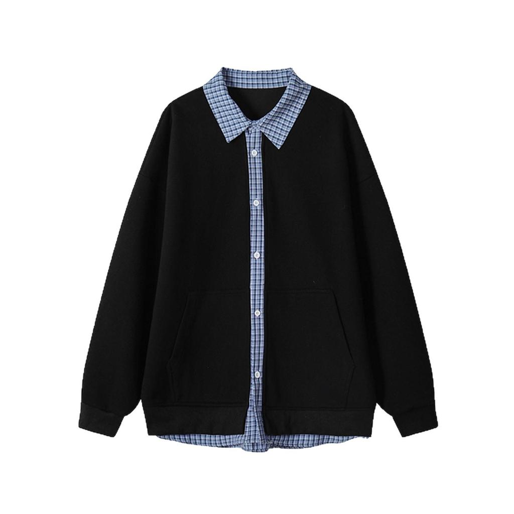 Fake Two-piece Plaid Sweater Mens Design Leisure Coat College Style Lapel Cardigan