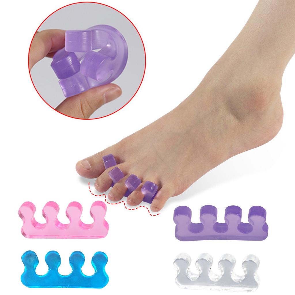 Toe Valgus Brace, Toe Overlap Corrector,Three Hole Blue Corrector Big Toe Separator Feather: ERGONOMIC TOE SPLITTER: Our carefully designed toe separators for men and women are ergonomically designed. By gently separating the toes, these toe separators conform to the natural shape of the foot, provide optimal comfort, and keep the foot properly during pedicure or daily use. ENHANCED COMFORT & SUPPORT: These pedicure toe separators are made of premium skin-friendly materials, providing enhanced comfort and support. The soft and construction ensures a snug fit without causing discomfort. FOOT HEALTH BENEFITS: The ergonomic design of our toe separators helps pressure points, reduce friction, and prevent toe overlap. By maintaining proper toe spacing, these toe separators help prevent common foot problems such as bunions and misalignments, promoting overall foot health. VERSATILE AND PRACTICAL: Our toe separators for men and women are versatile and practical. Whether used during pedicure or worn inside shoes, they provide the necessary support to comfortably separate the toes, improve foot alignment, and reduce foot pressure. EASY TO USE AND MAINTAIN: This toe separator adopts humanized design, easy to put and take off, convenient for daily wear. In addition, they are easy to clean and maintain, ensuring hygiene and long-lasting durability, continuous maintenance of foot health. Specification: Material:silicone Color:as shown Size: One Size Package-Includes:1set toe separators