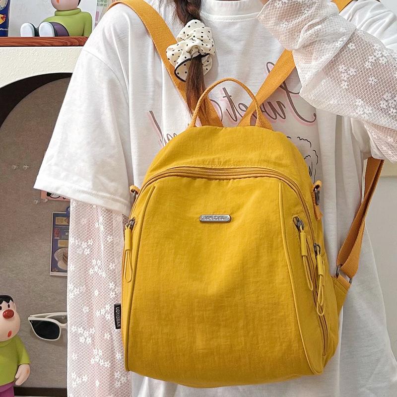 Versatile solid color women's backpack large-capacity leisure bag simple backpack light schoolbag light luxury student bag commuter bag
