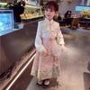 Introduce your little one to the elegance of ancient Chinese fashion with this beautiful skirt set. Inspired by the Ming Dynasty and Tang styles, this set showcases the timeless charm and cultural richness of traditional Hanfu attire. Crafted from a soft mesh material, it offers both comfort and breathability, making it perfect for springtime occasions. The design features intricate detailing and a graceful silhouette that celebrates the aesthetics of a bygone era, offering a unique blend of history and style for modern young wearers. Perfect for festivals, themed events, or capturing memorable photos, this attire is a lovely addition to any wardrobe.