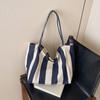 Striped large capacity canvas tote bag women's shoulder bag