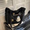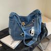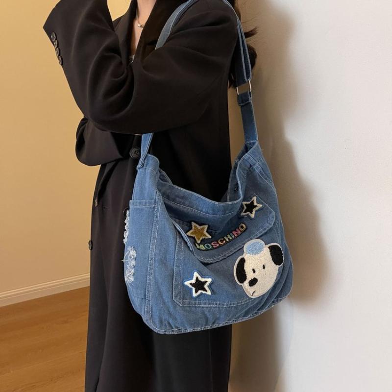 Korean Versi Carto Embroidered Washed Denim Bag for Students One Shoulder Crossbody Tote Bag, Casual and Simple Women's Bag