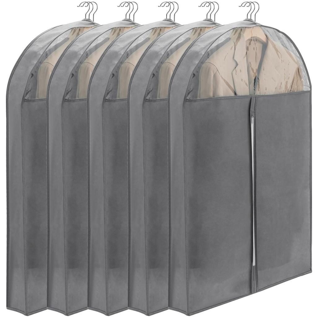 VECELO Garment Dustproof Suit Clothes Covers for Down Storage Transparent 90cm Covers, Covers, Covers, Hangers, 5-Pack, Gusseted, Moisture-absorbing,