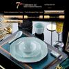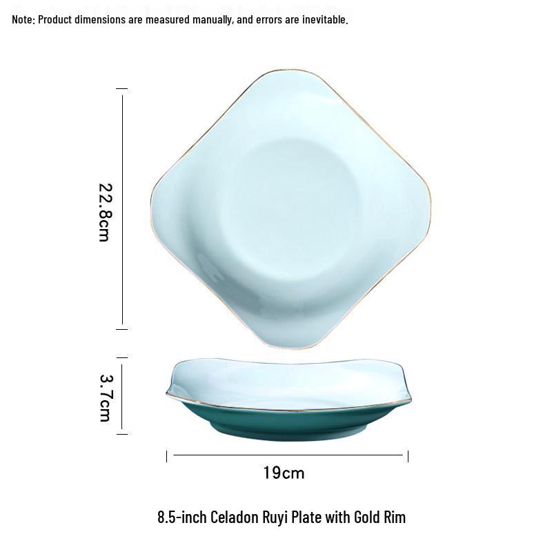 Gold Rim Celadon Square Plate - Light Luxury Ceramic Tableware Set