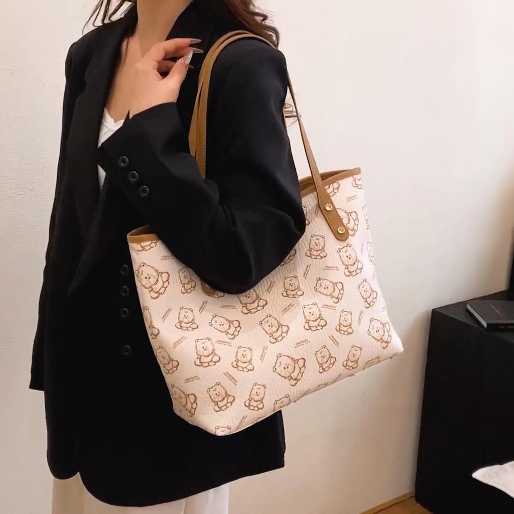 Büyük Kapasiteli Kadın El Çantası PU Günlük Tote Çanta Baskılı Koltuk Altı Çantası