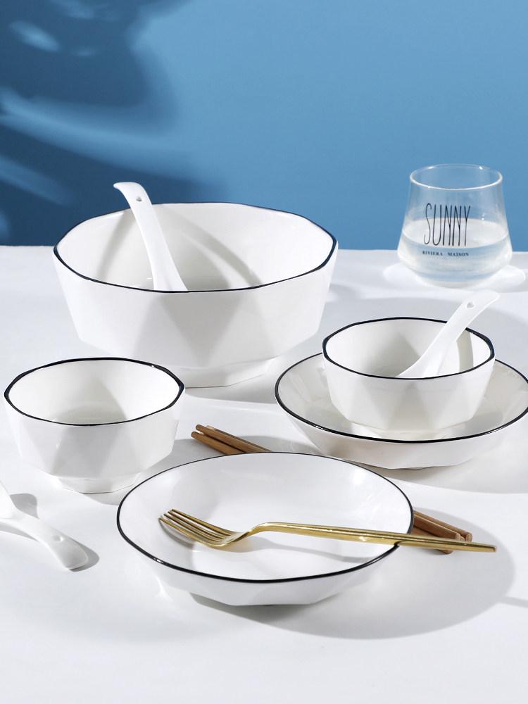 Nordic Style Ceramic Tableware Set: Couple's Rice Bowls & Plates for Two