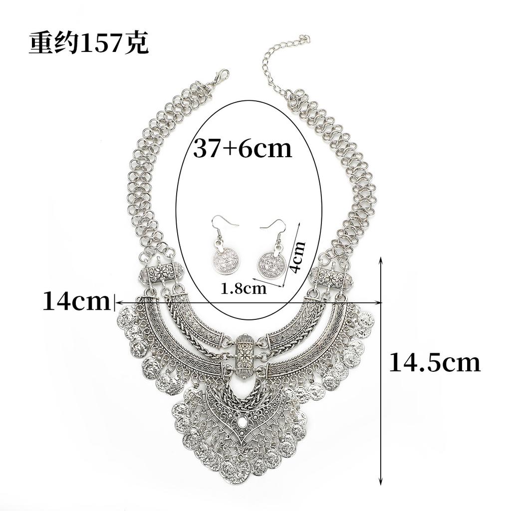 New retro thick chain fashion crescent fringe carved multi-layer pendant collarbone chain earrings